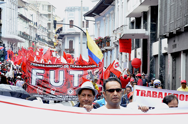 La estrategia comunicacional del régimen fue crear un imaginario en que Rafael Correa era el líder indiscutible, el padre y maestro de esta nueva refundación del Ecuador, mientras dividía al movimiento indígena y al movimiento obrero, estudiantil, sindical, creando organizaciones paralelas como la Confederación Unitaria de Trabajadores (CUT) para invisibilizar al Frente Unitario de Trabajadores (FUT), la Unión General de Trabajadores (UGTE); la Red de Maestros para contrarrestar a la Unión Nacional de Educadores (UNE), e infiltrando al movimiento estudiantil como la Federación de Estudiantes Secundarios del Ecuador (FESE) y la Federación de Estudiantes Universitarios del Ecuador (FEUE). ¿El objetivo final? Criminalizar la lucha popular.