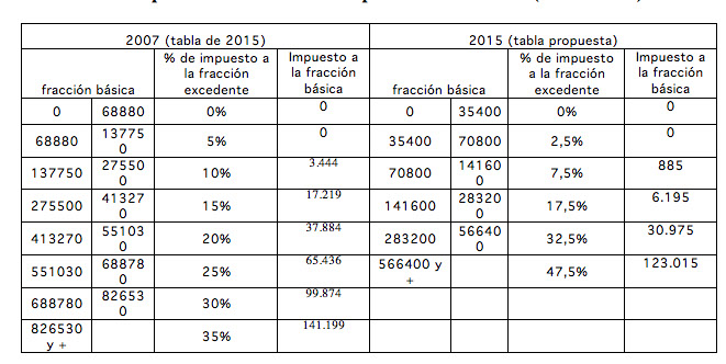 Cuadro 1. Comparación de tablas del impuesto a la herencia (2007 – 2015)